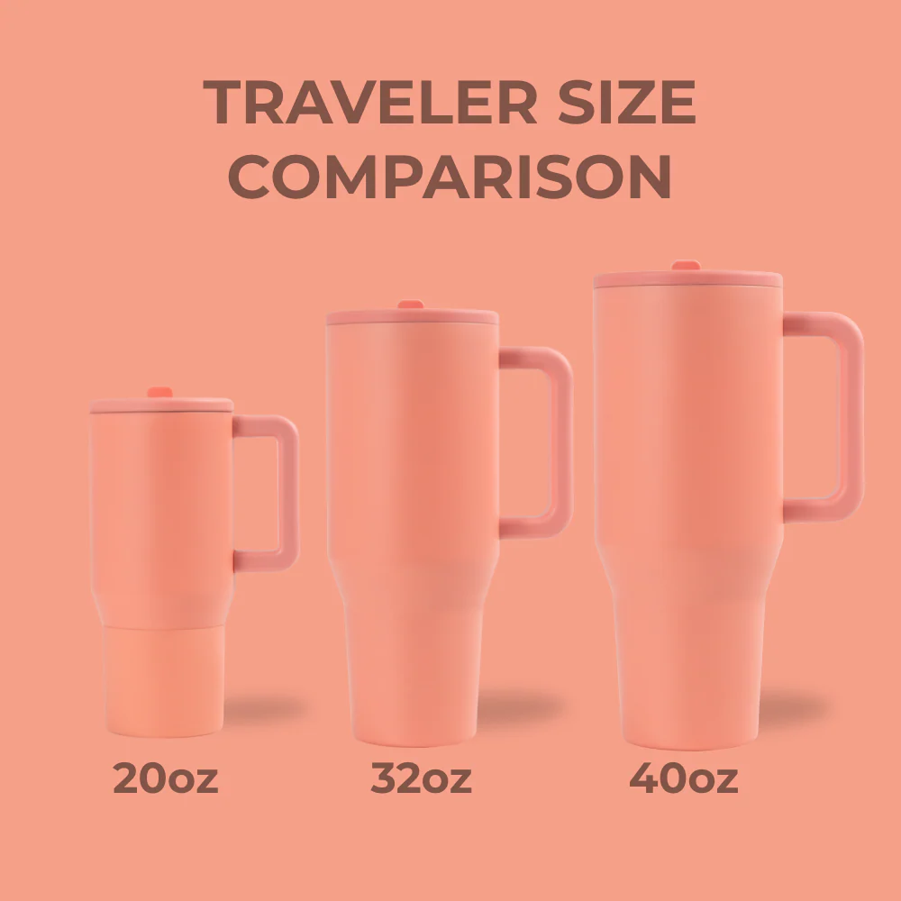 We took our viral 40oz Traveler and shrunk it down to 20oz. The 20oz Traveler is completely leakproof with the straw down. cupholder compatible. and has a hygienic circular flip straw for easy sipping. The 20oz Traveler comes with a removable silicone boot that’s perfect for protecting your bottle and your surfaces. Perfect for both you and your mini me’s. this new size is a must-have in your hydration lineup.